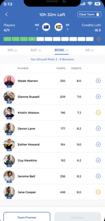 Experience a sleek, user-friendly interface with smooth navigation, quick load times, and a visually engaging design for effortless fantasy cricket gameplay!